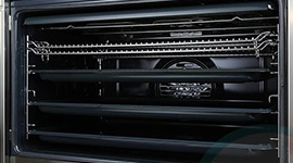 To keep your oven clean add a little water to the oven cavity floor and spray some water and detergent over the oven walls. Choose the Vapour Clean setting and allow the vapour to soften any residue. This can then be simply wiped off with a damp cloth once the cycle has finished.