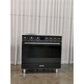 | Features | Installation Type: Freestanding Installation. Display: Oven Timer, End of Cooking Acoustic Alarm. Finish: Matte Black Cabinet with Stainless Steel Trimmings. Cavity Material: Ever Clean Enamel. Cleaning: Vapour Cleaning. Side lights: 2 x 40-watt Halogen Lights, Oven Lights come on when the door is opened. Safety Thermostat: Yes Air cooling system: to ensure a safe surface temperature. Storage Compartment: Yes, Drop down flap located under the oven. 5 x Cooking Zones: |