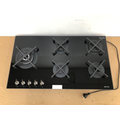 | Features | Built-In Type: Ultra Low Profile or Fully Flushed. Cooktop Finish: Black Tempered Glass with a Straight Edge. Burner Finish: Matte Black Finish with Cast Iron Trivets. Control Knob Location: Front Stainless Steel Control Knobs. LP Gas Conversion Kit Included: Yes Flame Failure Safety Device: Yes Power Required: Yes, a 1200mm powercord is attached that operates the electronic Ignition. 5 x Cooking Zones: |