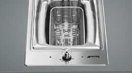 | Features | Build Type: Ultra Low Profile Top Installation. Finish: Stainless Steel Finish. Controls: 1 x Single Dial Control. Power Supply: 2200 watts, 1200mm power cable attached. Temperature Range: 0 to 180 Degrees, Thermostat control. Safety Feature: Automatic switch off when overheating. Heating: Bottom Heating Element. Drain Basket: Stainless Steel Finish with two Drain Positions. Cover: A stainless steel cover entirely covers the anti-emulsion bowl. |