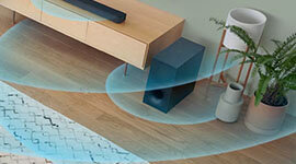 Enjoy deep, resonant bass that enhances every soundtrack. The large 160mm wireless subwoofer produces rich low-end sound while keeping your entertainment space free of cables and clutter.