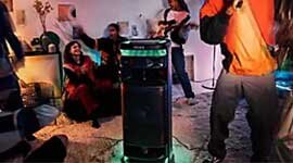 Includes a wireless microphone and an additional mic/guitar input with onboard vocal and sound effects.