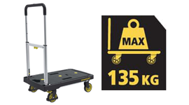 With an aluminium frame and platform, this reliable trolley is light in weight but robust in its design. The steel handles enable secure and comfortable handling.