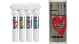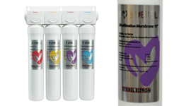 The purple cartridge uses an ultra-filtration membrane filter to remove bacteria, cysts, algae, and any particles less than 0.01 micron in size.