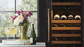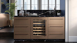 This Sub-Zero wine fridge is designed to match or complement the appliances and cabinetry in your kitchen, whether you have a sleek and sophisticated entertaining area or a discreet butler’s pantry. While the door panel and handles are customised to fit beautifully into any space, the UV-resistant glass showcases your wine collection and shields your wines from harmful light exposure.