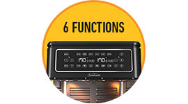 Sunbeam make it even simpler to cook your favourites, with six cooking functions (Air Fry, Turbo Crisp, Roast, Bake, Grill and Reheat) and four Air Fry presets (fries, chicken, meat and veggies).
