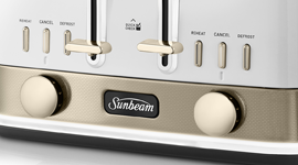 The slots are designed to hold your bread precisely in place. So whether you’re toasting thin or thick slices, your bread will be held in the centre to ensure even toasting.