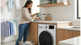 Combining washing and drying capabilities in one appliance, this model streamlines the entire laundry process. Clothes can be washed and dried in a single machine, saving space and reducing the need to transfer loads between appliances.