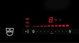 | Features | ● Warming function - Keeps cooked food warm at approx. 65 °C. ● Cleaning lock - Deactivates the control panel so that the controls can be briefly cleaned. ● Melt function - For gently melting e.g. butter, chocolate or honey at approx. 40 °C. ● Pause button - Temporarily switch cooking zones to power level 1 for ten minutes. ● Zone connection - Switches two zones on behind each other and adjusts them together. ● Simmer function - For simmering e.g. sausages or dumplings in hot water at below boiling point. ● Operating time with shut-down function - The appliance is equipped with a timing device monitoring the cooking zones. This automatically shuts off the cooking zone after a certain operating time, depending on the power level set. ● Restore function - If the appliance is accidentally switched off, the settings can be restored in just six seconds. ● MultiSlider/direct selection control ● Button sound (on/off) ● 9 Power levels Cooking Zones ● Central, left-aligned - max. power: 6667 W ● Front, centre - max. power: 1806 W ● Rear, centre - max. power: 1806 W ● Rear right - max. power: 3194 W ● Front right - max. power: 1111 W |
