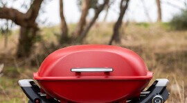 The barbecue's large cooking area is designed to efficiently grill up to 12 burgers simultaneously, making it perfect for hosting gatherings or family meals.