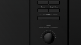 The microwave’s controls are both contemporary and easy to use. Each button is clearly labelled with its function, and collectively they are arranged in a logical, symmetrical formation. The control dial puts the cooking time in your hands, literally.