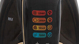 A colour LED touch panel offers intuitive control over all functions. Select settings effortlessly with the + and - buttons. (Note: functions shown illuminated in images are for illustration only; one function displays at a time.)