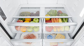 Sealed FreshSeal crispers feature a manual humidity slide, allowing precise control over moisture levels. This helps reduce moisture loss, maintain ideal storage conditions, and keep fruit and vegetables fresher, crisper, and flavourful for longer.