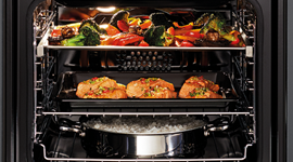 The oven boasts a spacious interior with different shelving options. Prepare large dishes for entertaining and family-satisfying Sunday roasts. The easy-guide side racks make placing your shelves in the oven effortless.