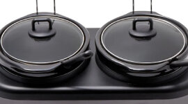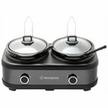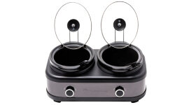 | Features | Dual 2.5L Ceramic Inserts for Simultaneous Cooking: Prepare two separate dishes at once— perfect for meal prepping, entertaining, or catering to different dietary needs in one go. Sleek Black Stainless Steel Design: Adds a modern, sophisticated touch to your kitchen while offering durability and resistance to fingerprints and smudges. Removable Tempered Glass Lids: Easily monitor cooking progress without lifting the lid, ensuring heat and moisture stay locked in for optimal flavour and texture. Cool-Touch Handles for Safe Handling: Move and serve confidently, even when the cooker is hot, thanks to handles designed to stay cool during operation. Versatile High, Low, and Auto Functions: Choose between slow-cooking over several hours or speeding things up with the high setting; the auto function transitions to keep-warm mode automatically for perfectly timed meals. Easy Cleanup with Removable Ceramic Inserts: Both the ceramic inserts and tempered glass lids are fully removable, making post-meal cleanup a breeze. Complete Cooking Set Included: Comes with two serving spoons and lid holders, giving you everything you need to cook and serve meals straight from the box. |