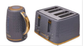 Measurements: Toaster: H: 200mm, W: 290mm, D:280mm, Power 1600 Watts. Kettle: H: 225mm, W: 220mm, D: 160mm, Power 2200 Watts. |