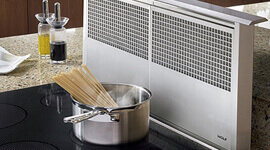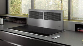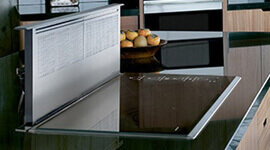 When no longer needed, the Wolf downdraft ventilation system effortlessly retracts into the countertop, preserving the clean and open look of your kitchen. Its seamless design keeps sight lines clear while maintaining an elegant, uncluttered space.