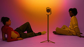 Enjoy the perfect viewing angle anywhere with a built-in 360° stand and automatic focus and keystone correction. Project effortlessly on walls, ceilings, or angled surfaces.