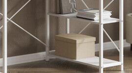 Two built-in shelves provide easy access to books, files, or work accessories, helping you stay organised.