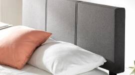 Wrapped in soft, dark grey fabric for a sophisticated, tailored look that complements any bedroom décor.